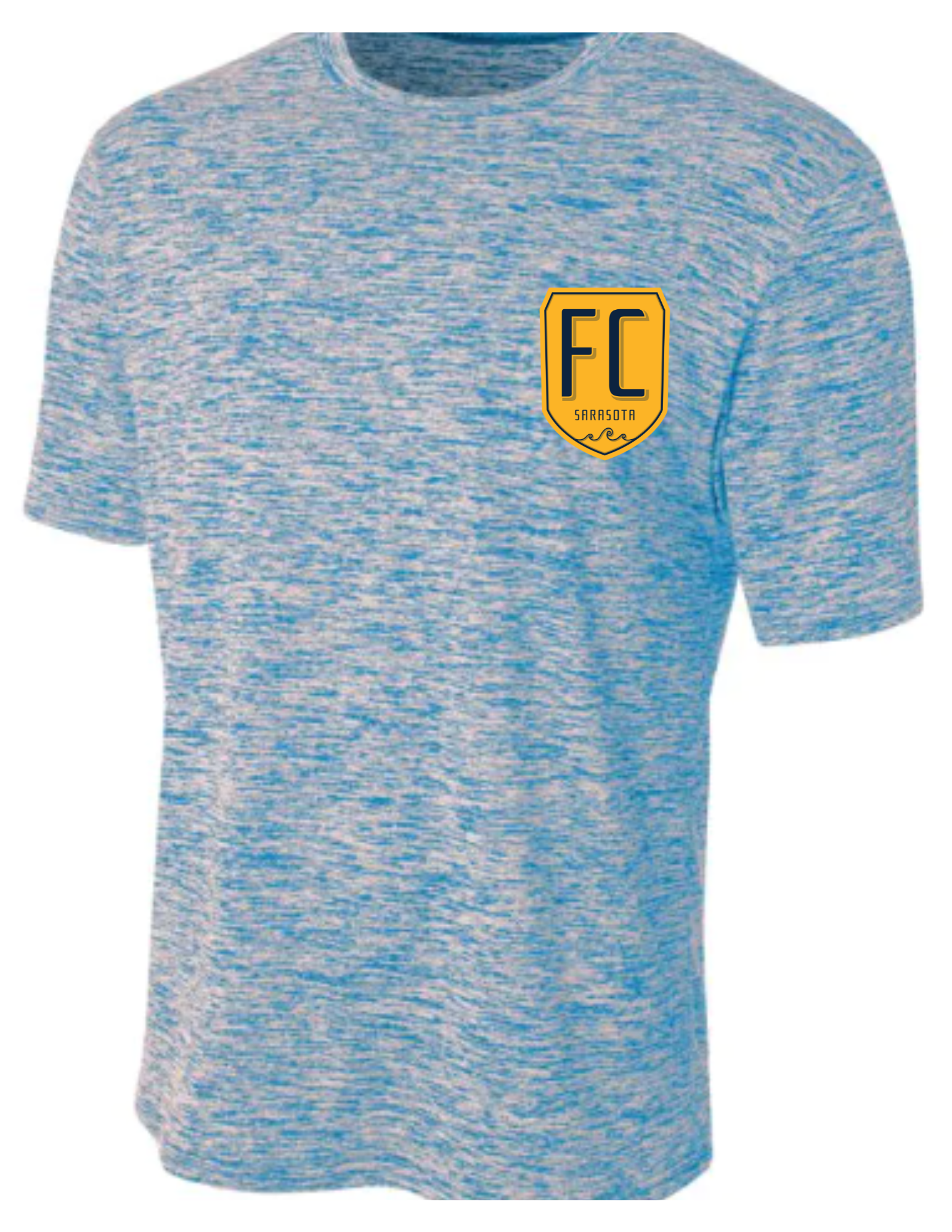 This space dye tech tee features moisture-wicking technology to pull the water or sweat away from the body keeping the user cool and dry. High-performance fabric with reinforced seams and a double needle cover-stitch hem provide added durability.